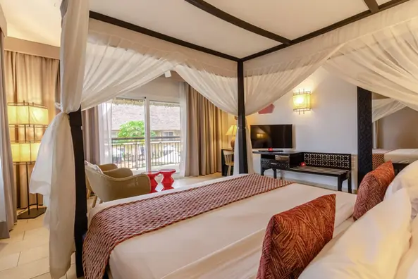 La Camera Familiare Superior del Diamonds Mapenzi Beach Zanzibar dispone di un'ampia camera da letto principale e di una zona notte aggiuntiva, offrendo ampio spazio per il relax di genitori e bambini. I comodi letti king-size o singoli sono dotati di morbide zanzariere per un sonno ristoratore.